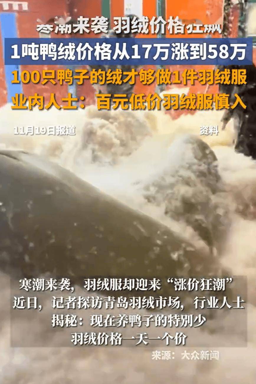 1985年,这幅画做成为雅诗兰黛荣誉董事长李奥纳德·A·兰黛的私家珍藏品。兰黛于本年6月归天,享年92岁。11月19日,跟着寒潮的到临,“1吨鸭绒从17万涨到58万”的话题激发了大师关心。据羽绒市场行业人士引见:现正在养鸭子的出格少,羽绒价钱一天一个价,90%的白鸭绒最低的时候1吨17万元,现正在差不多58万元,鹅绒现正在是98万元1吨。