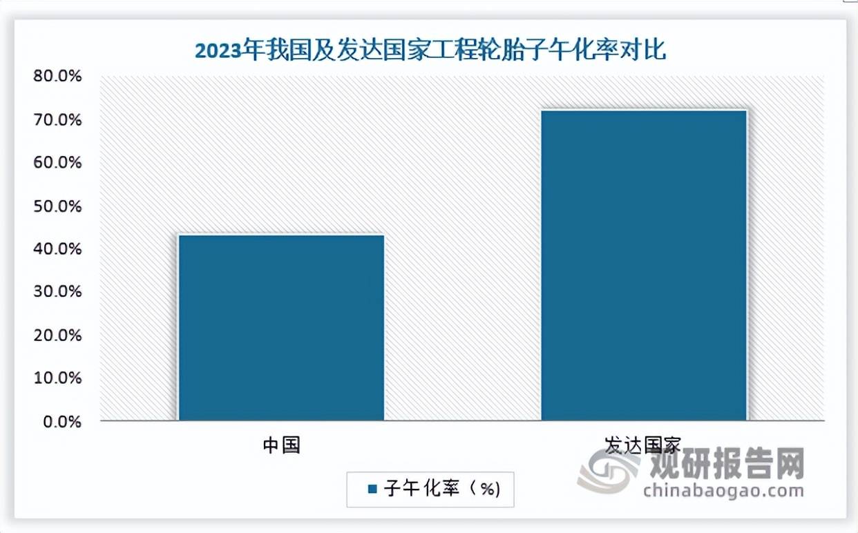 比拟之下,我国工程轮胎行业仍存布局性升级空间。数据显示,2023 年我国工程轮胎子午化率仅为 43。2%,而发财国度的工程轮胎子午化率已达 70%以上。