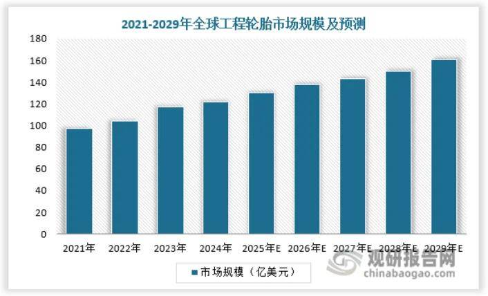 工程轮胎,也称为OTR轮胎,是专为工程机械、工业车辆及特殊功课场景设想的轮胎,次要用于拆载机、挖掘机、推土机、起沉机、矿用卡车等沉型设备。按照不雅研演讲网发布的《中国工程轮胎行业成长深度阐发取投资前景研究演讲(2025-2032年)》显示,虽然相较于卡客车和乘用车轮胎而言,工程轮胎市场规模较小,但基于矿山和建建等工程的庞大市场需求,工程轮胎行业潜力正逐步。矿业、建建业是工程轮胎的沉点利用范畴,全球工程轮胎市场正在矿业苏醒取基建投资高潮中加快回暖。2022年全球工程轮胎市场规模已恢复至104 亿美元,同比上升7。22%。跟着全球生齿增加和城市化程度提拔以及低碳规划的驱动,将鞭策新型城市根本设备扶植需乞降绿色能源根本系统扶植需求的持续,工程轮胎送来主要成长窗口期,估计全球市场规模将连结较快增加,至2029年达160 亿美元,2022-2029年CAGR达6。4%。